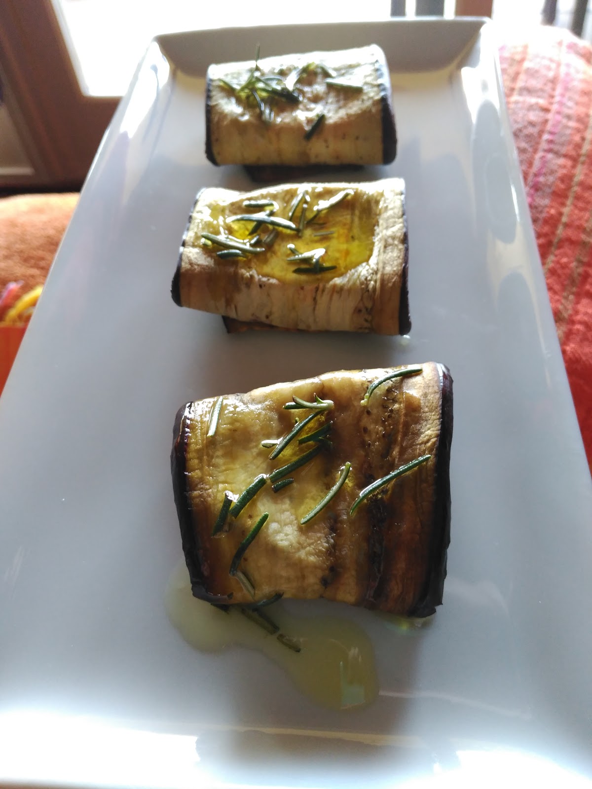 – Con el horno precalentado, meter la bandeja con los paquetitos de berenjena, y sacar cuando veáis que comienza a deshacerse el queso.