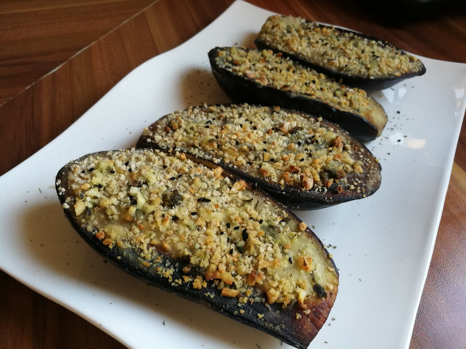 – Lavar las berenjenas, quitar el rabo y partir por la mitad a lo largo