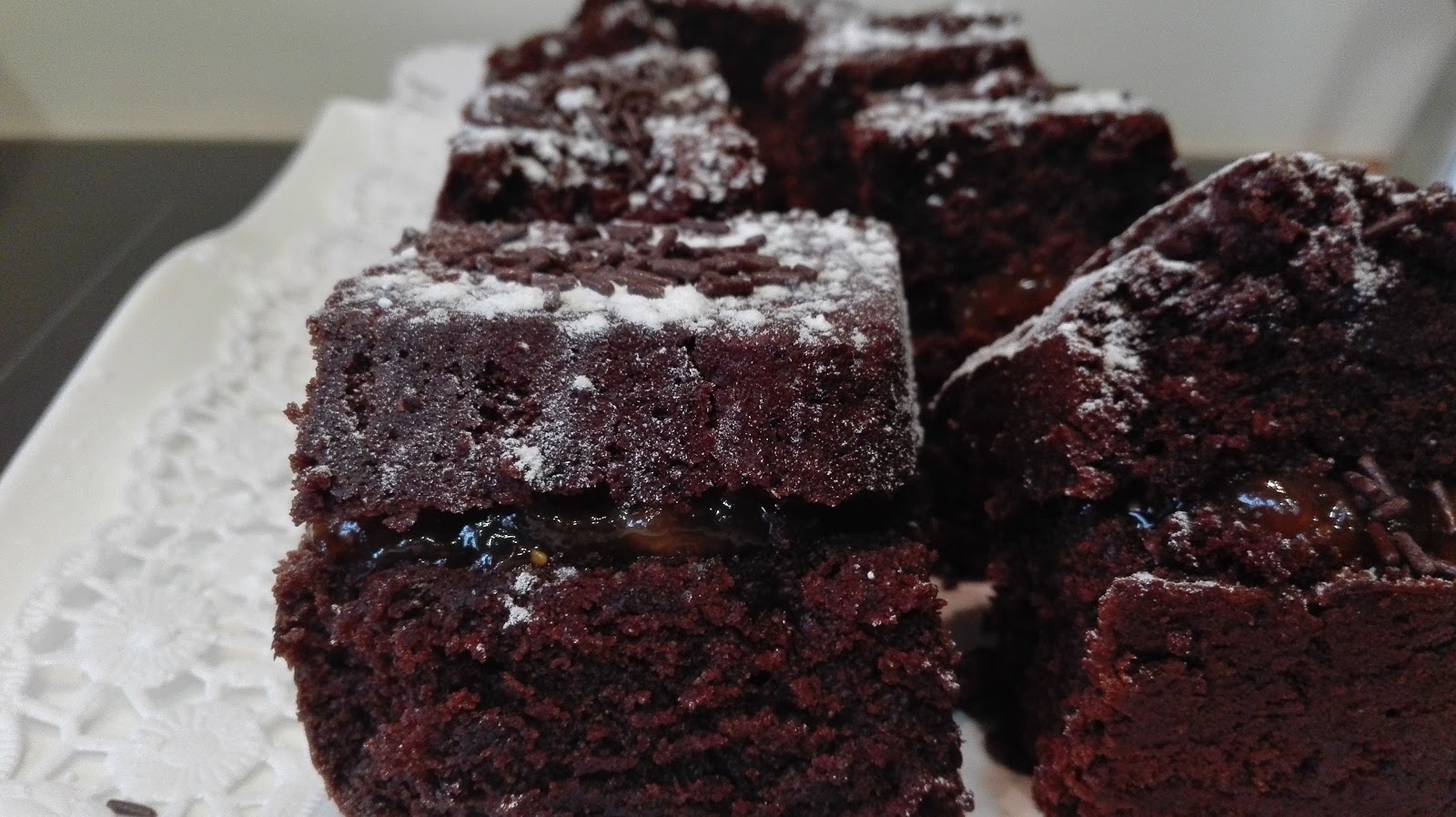 – Enfriar, desmoldar, cortar a cuadraditos y rellenarlos con la mermelada