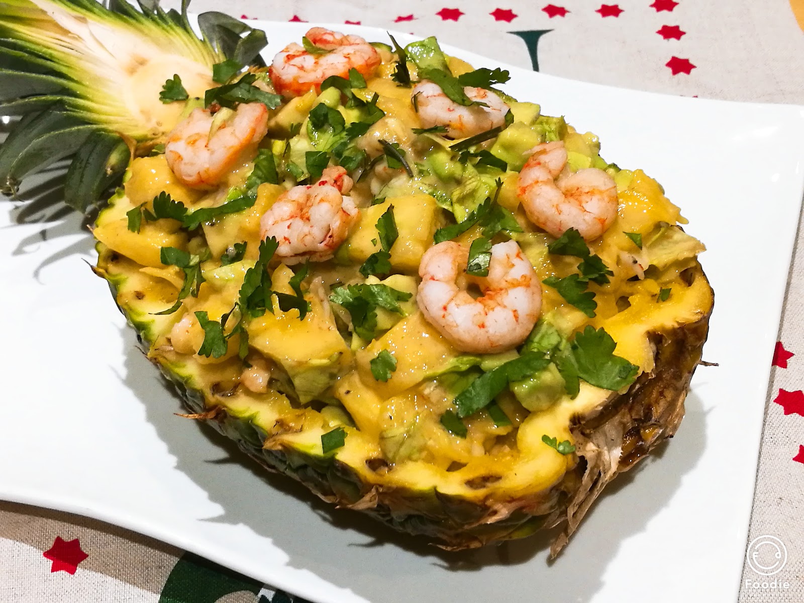 Que bueno el cóctel de gambas en la piña, con el aguacate me gusta la idea, tengo que probar. Lo apunto. Felices fiestas.