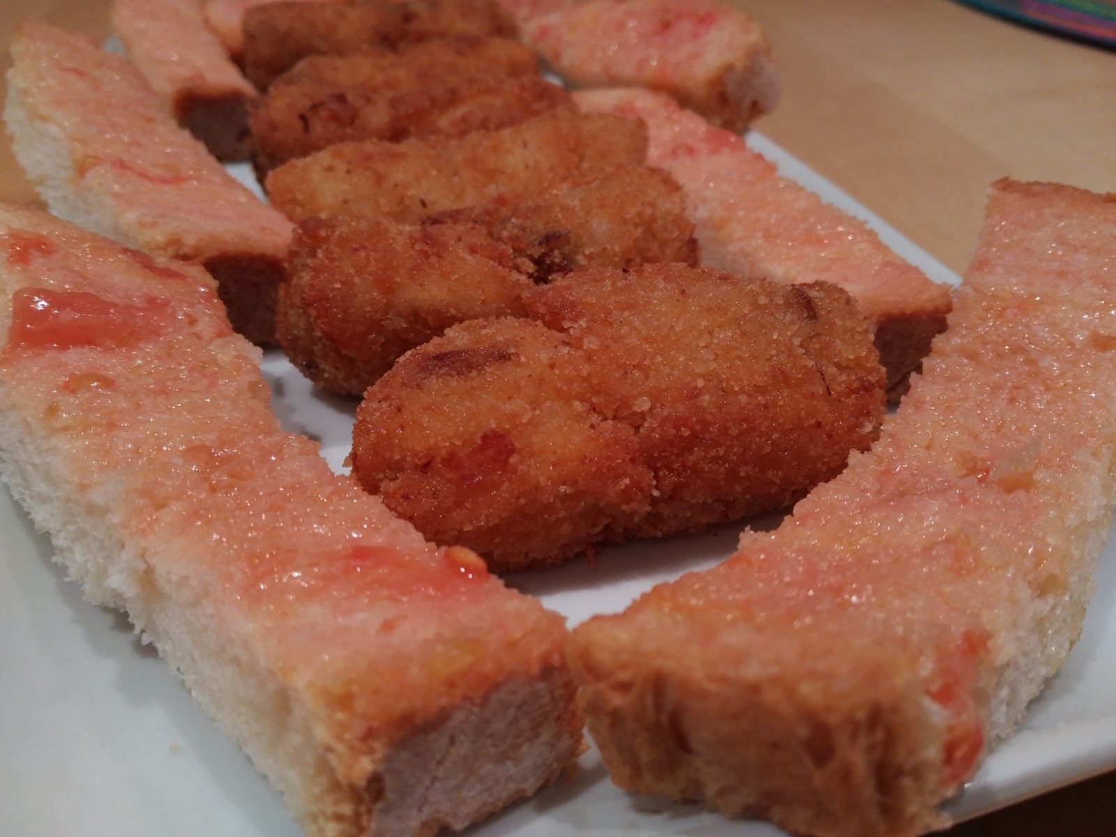 – Formar las croquetas, rebozar en huevo y pan rallado y freir en aceite bien caliente, dejándolas luego escurrir el aceite sobre papel absorbente.