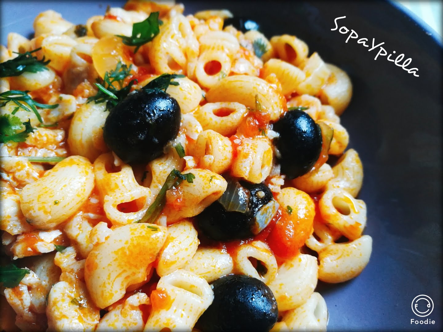 1 latita de aceitunas negras (la receta original era con tomates cherry, pero como no tenía improvisé con las olivitas)