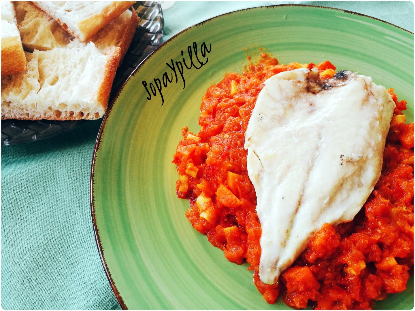 – Pasamos el pescado por la plancha y lo servimos junto a la salsa de verduras con muuuucho pan.