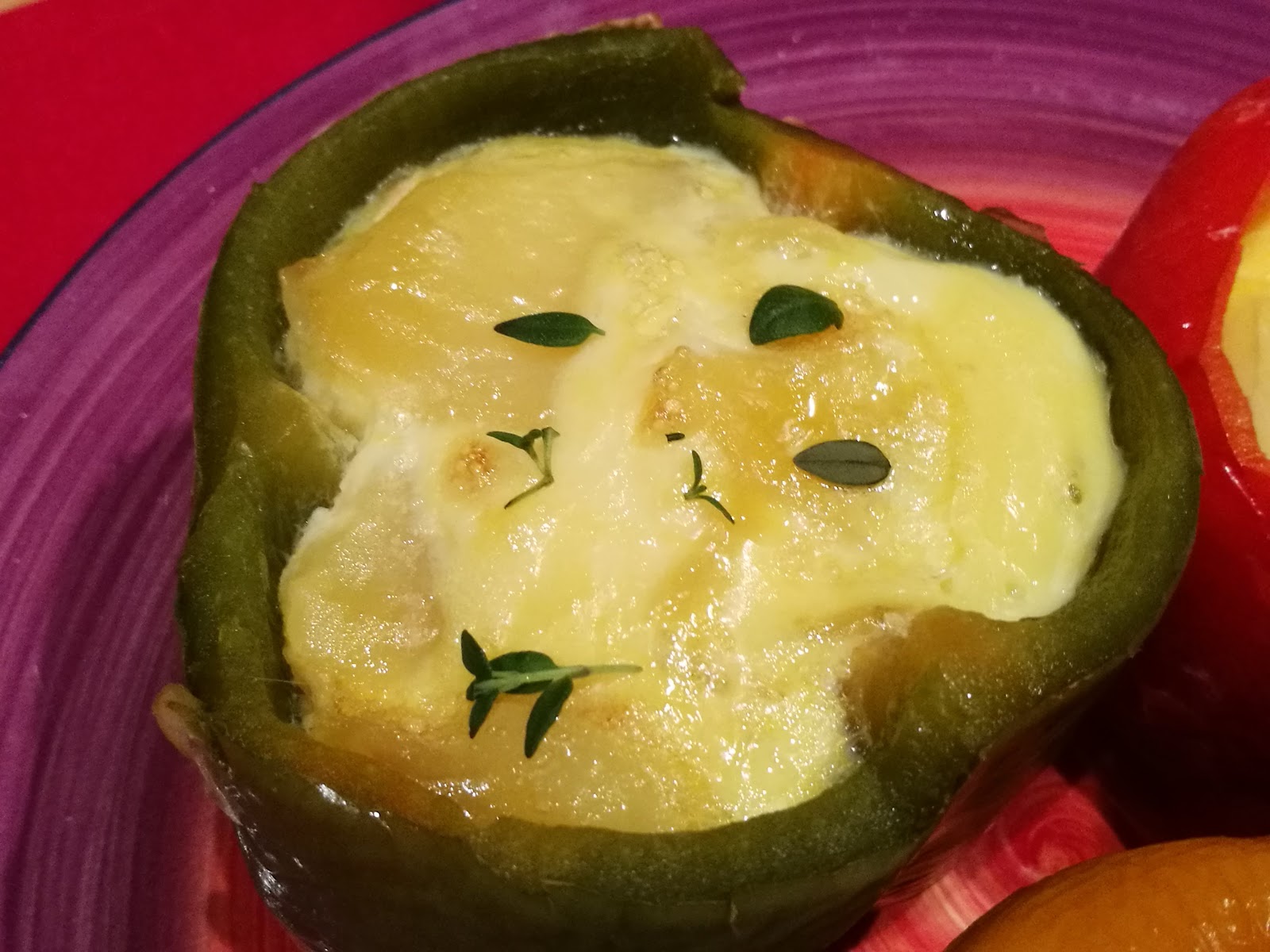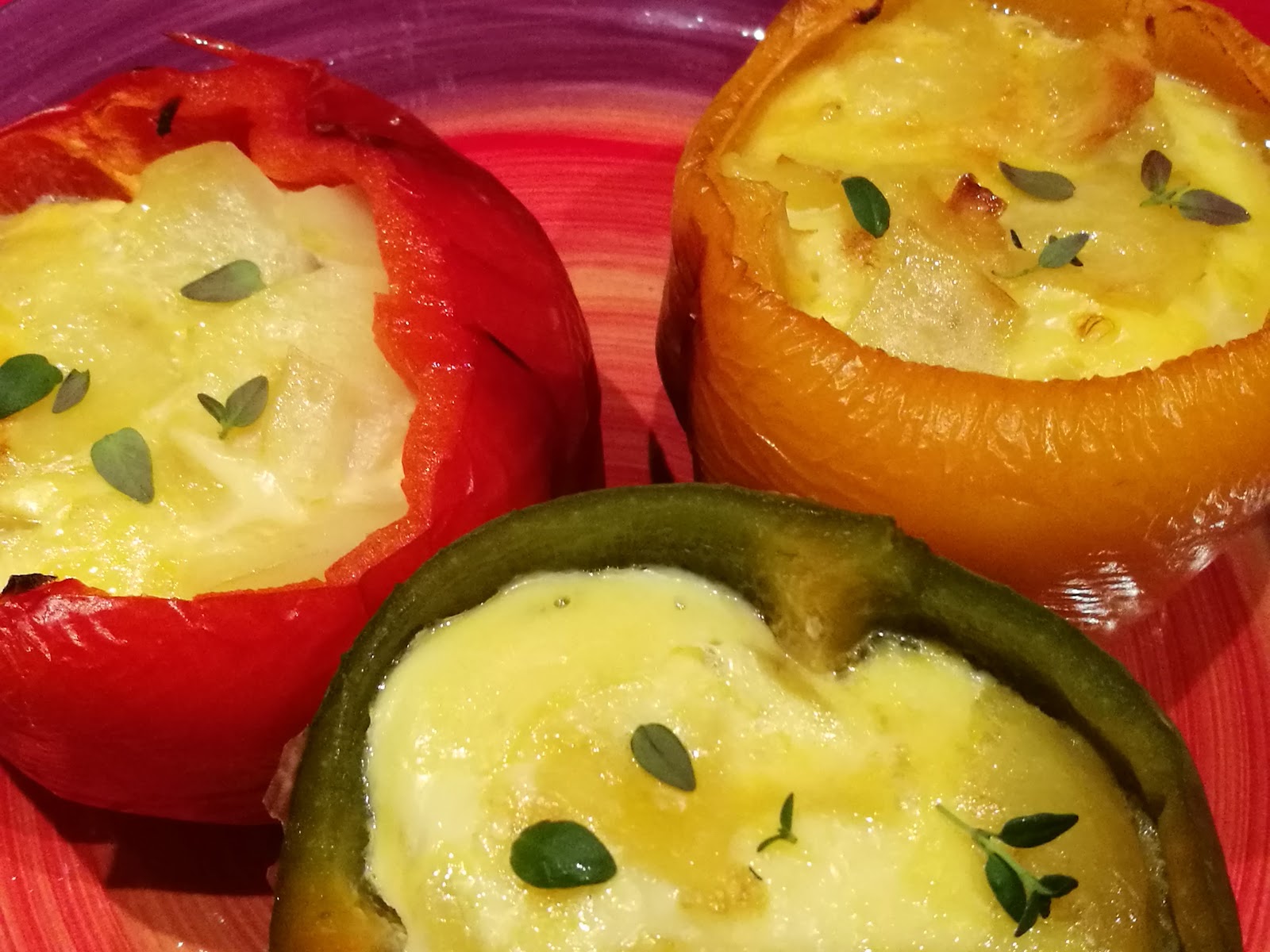 Que delicia, comer en cuencos de pimientos con ese rico sabor entre patatas y huevos es todo un festín, de esos para tener una cena rápida y deliciosa, que rico asalto Hirma! un beso y buen finde