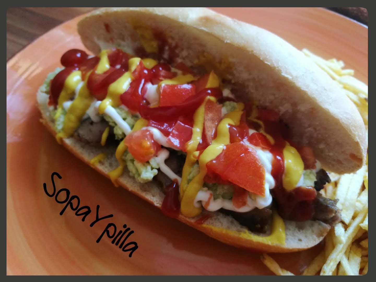 Ya sabéis que yo siempre tiro a la comida callejera, y no hay nada más callejero que este bocata que os traigo. Está impresionante de sabor, y no cuesta nada de nada cocinarlo. Se puede hacer también con salchicas cocidas, recibiendo en nombre de “completo chileno”, será por opciones… Os animáis?