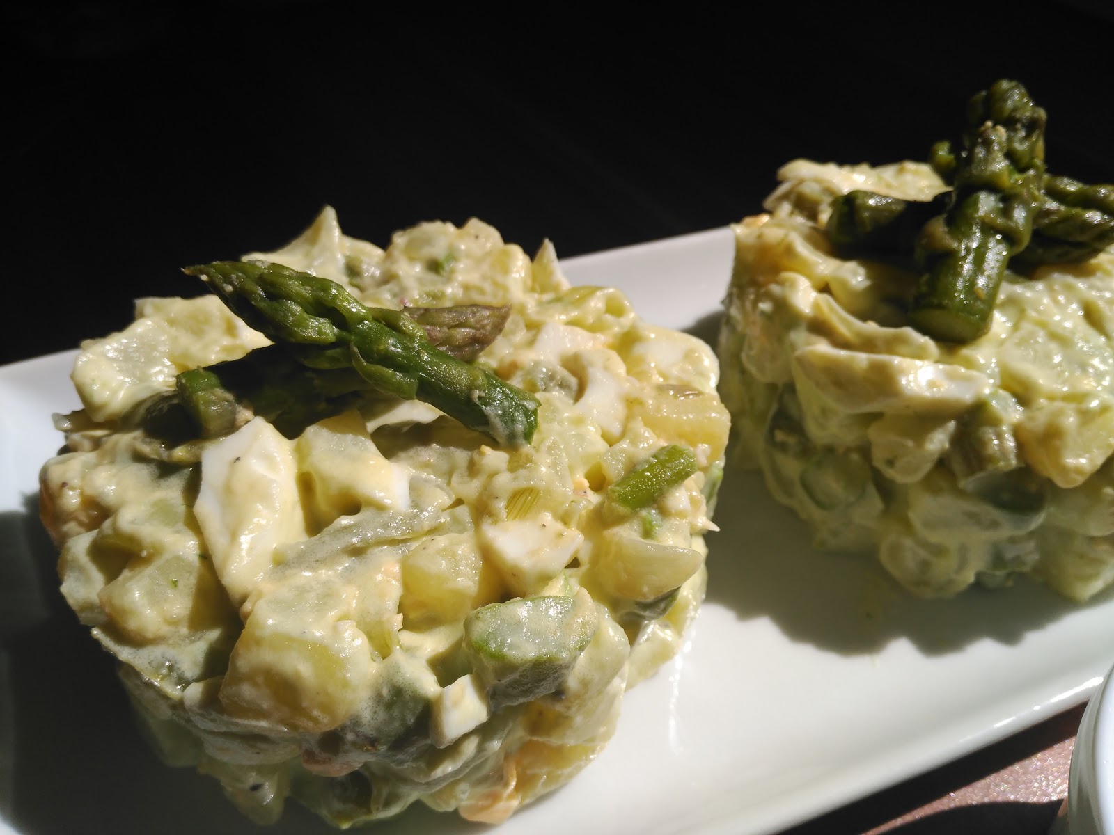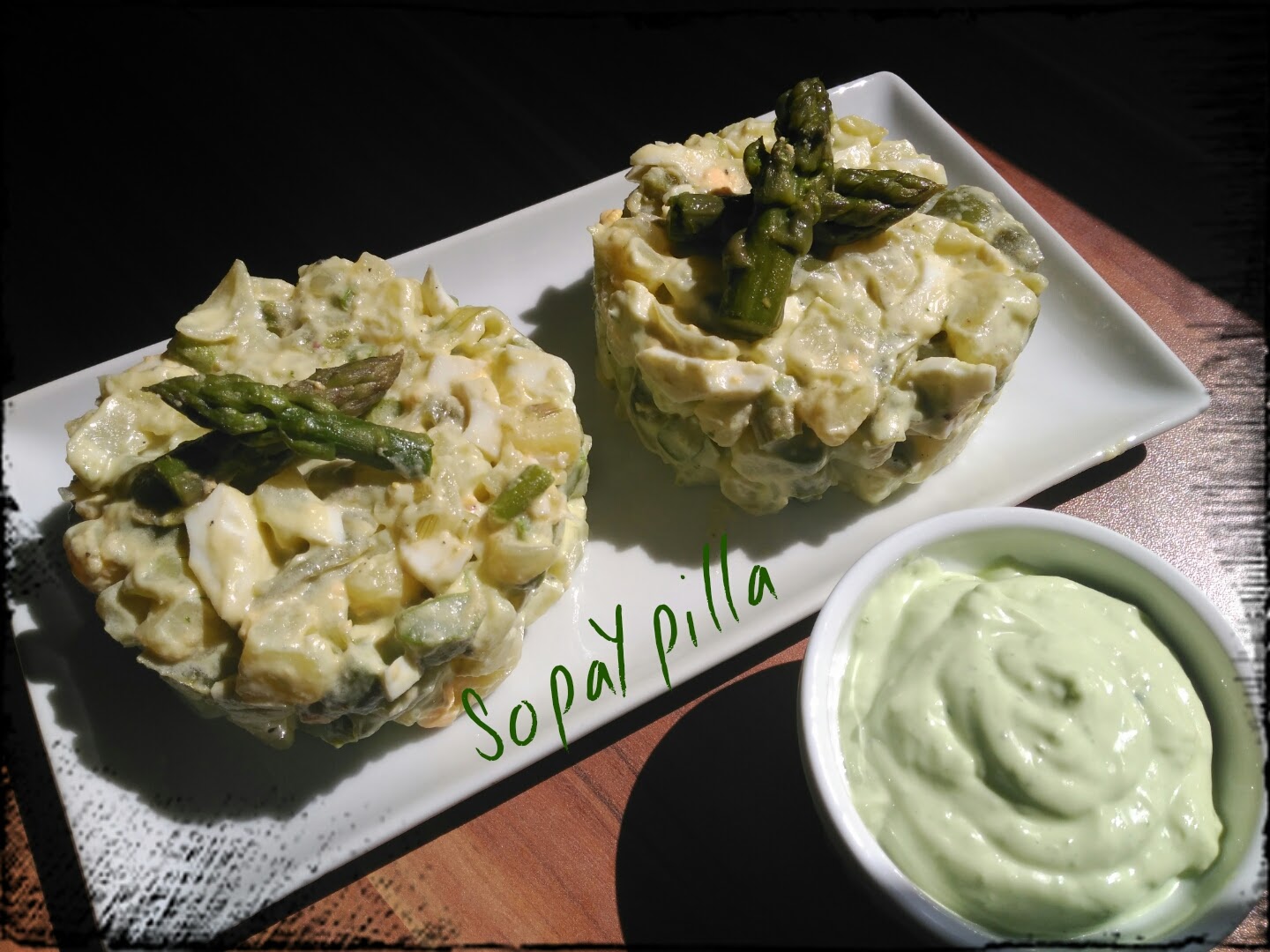 – Salpimentar y añadir la lactonesa, mezclando bien hasta integrar. Servir decorando con las puntas de los espárragos.