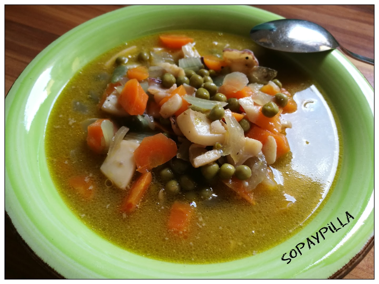 Un plato completísimo, con verduras, legumbres y pescadito…y además de cuchara!! qué más se le puede pedir a un plato? pues pan y un buen vinito…super facilito de hacer y una delicia que no se puede dejar pasar. Vamos a él!