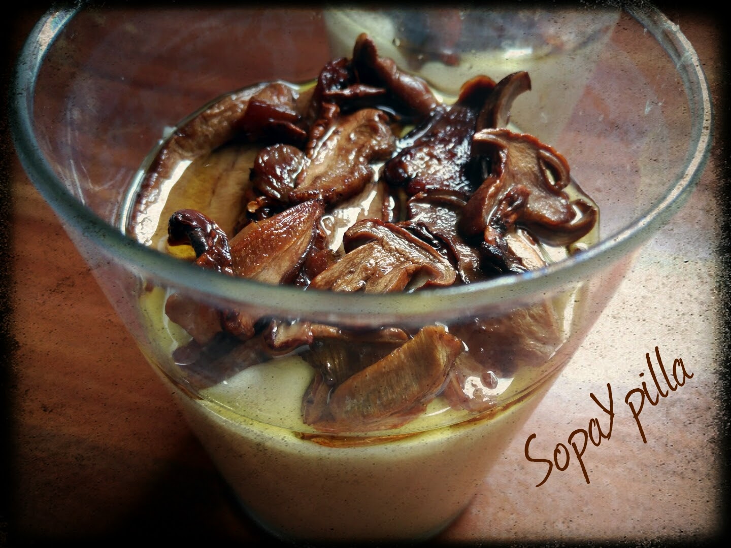 Un primer plato de lujo, para quedar bien con el más delicadito, y de dificultad cero. Está realmente delicioso, si no os gustan las setas, la podéis hacer sola, una delicia, o bien con setas frescas…yo tiré de un botecito de boletus secos que siempre aparece por la despensa…
