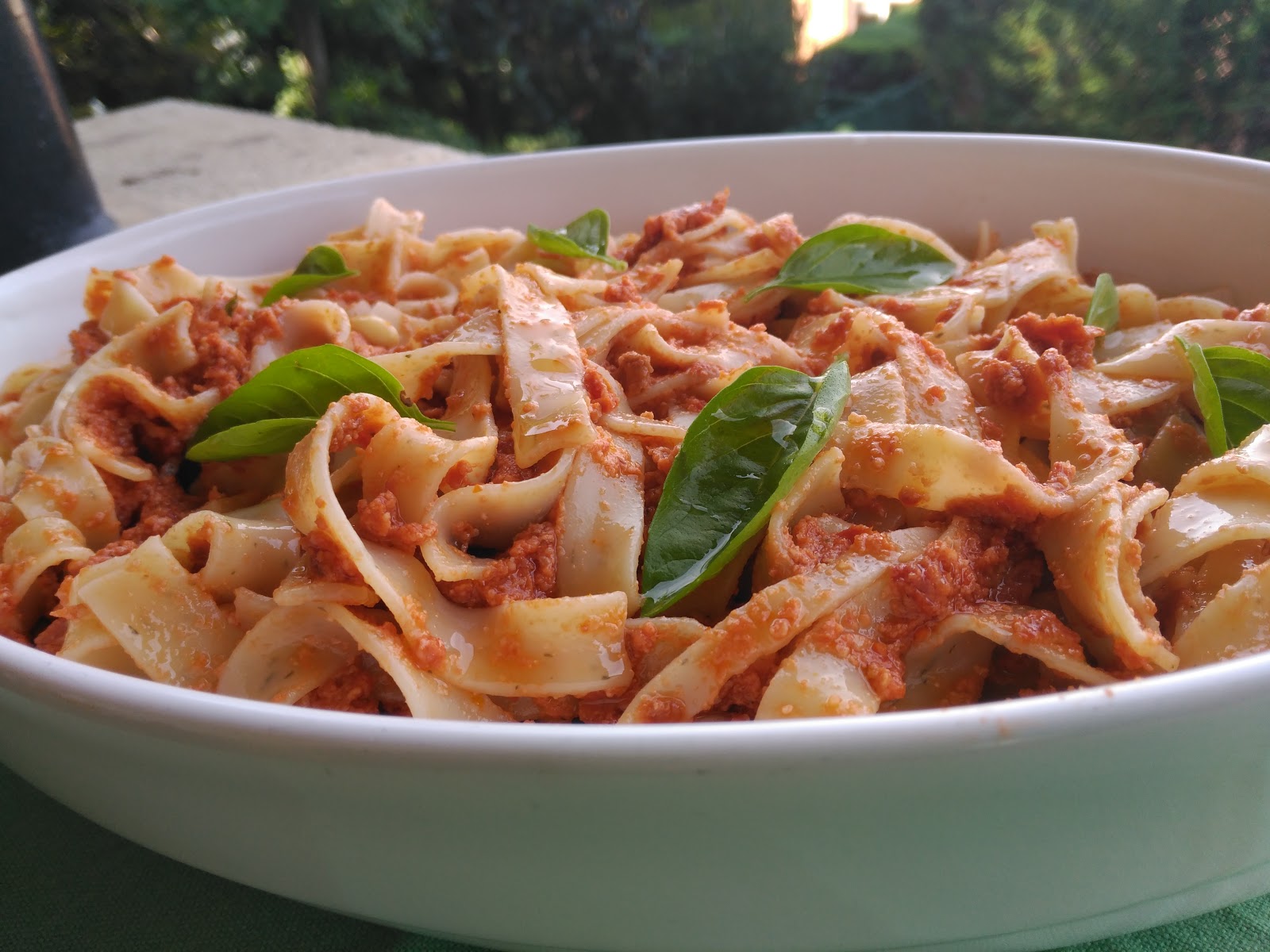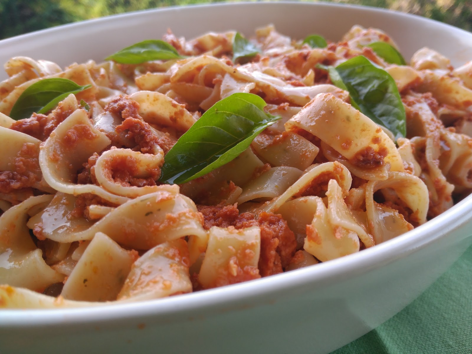Me encanta la salsa pesto y me encantan los tomates, así que con algún tuneo, me puse manos a la obra con esta receta que vi en una revista y que voy a repetir 1.000 veces más…está buenísimo!!