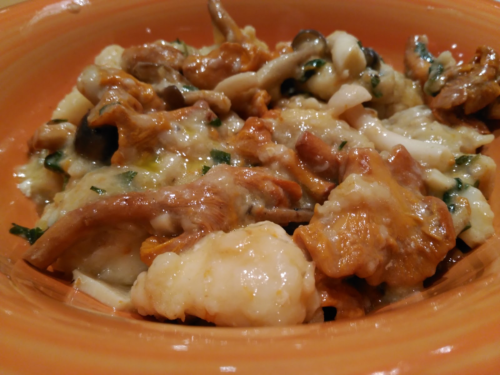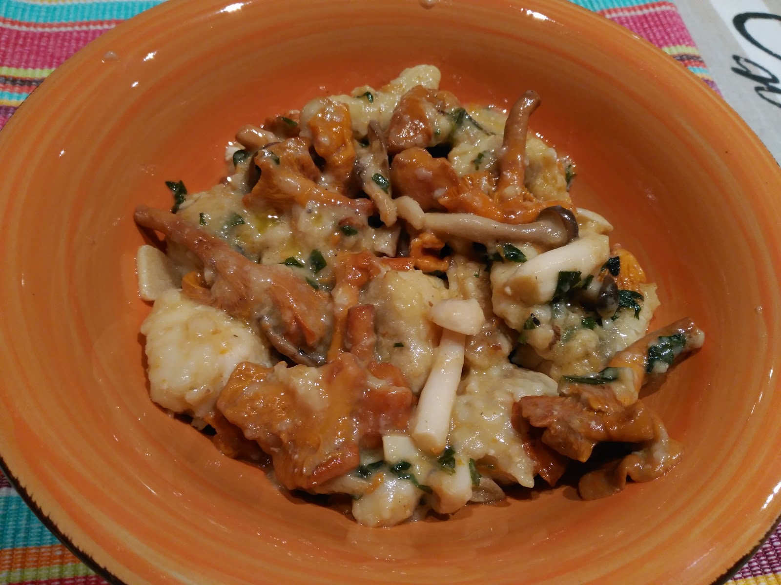 – Añadimos las setas y los ajos y rehogamos, hasta que estén un poco hechas