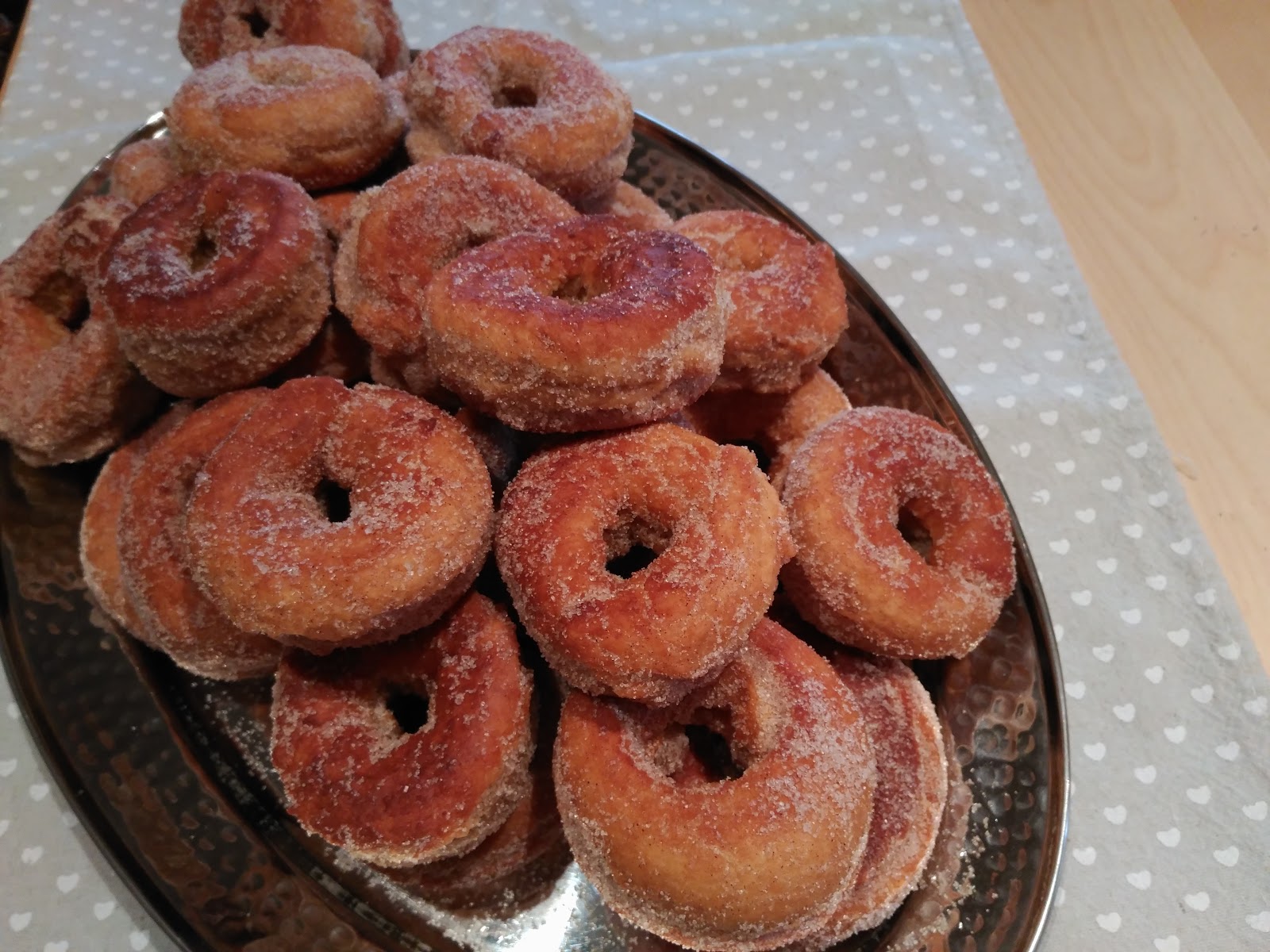 – Retirar exceso de aceite y rebozar en la mezcla de azúcar y canela.