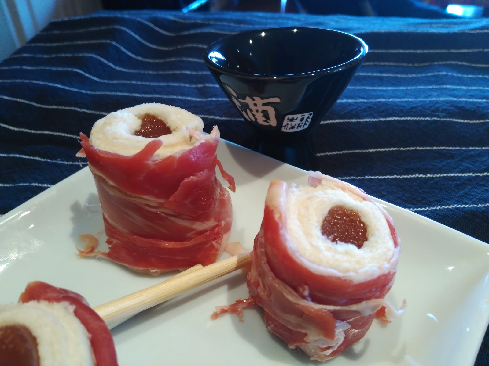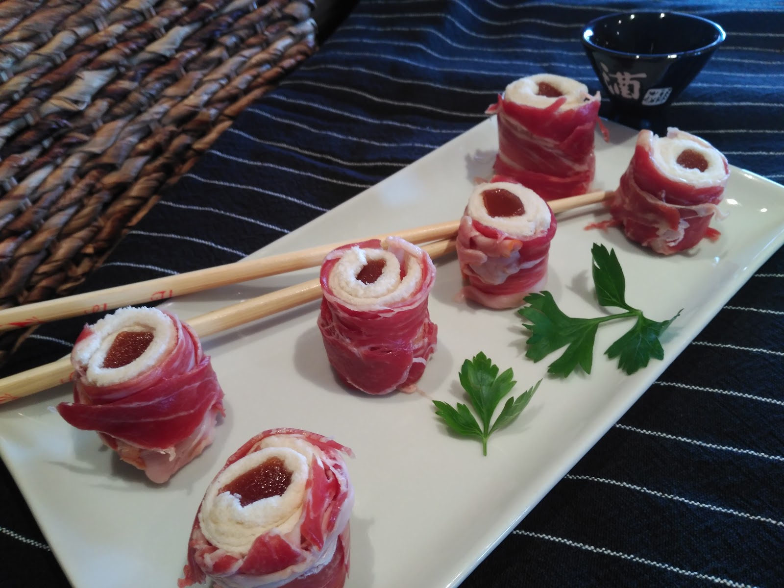 – Envolvemos ahora los rollitos con el jamón, y a disfrutar!!