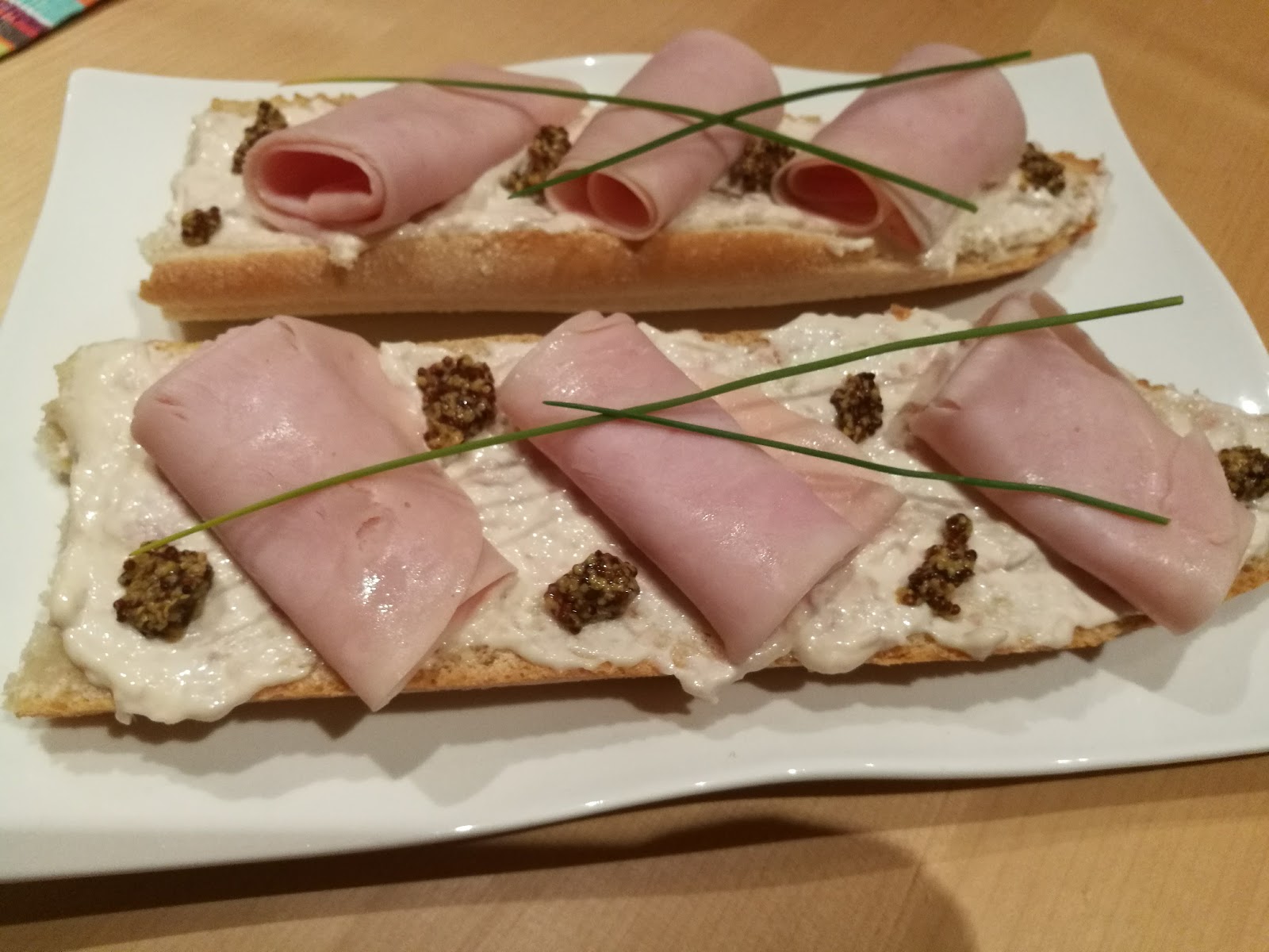 – Decorar con unos toques de mostaza y el cebollino