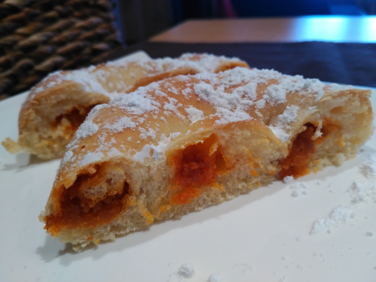 – Pincelamos esa lengua de masa con mantequilla en pomada (las dulces) o ponemos trocitos de sobrasada (las saladas) y la enrollamos por la parte larga, como si fuera un cigarrillo.