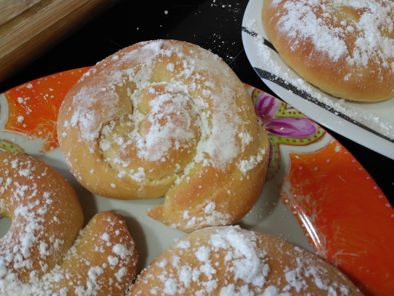 Hace muchos años que no he vuelto a probar a hacer ensaimadas…todo fué debido a una receta que probé de hacer, que representó toda la tarde peleándome con la masa y el resultado fué que a la hora de sacarlas del horno estaban tan duras que las tiré directamente de la rabia. Por fin he podido sacarme esa espinita, gracias a esta receta estupenda de mi amiga Leila. Pasad a echar un vistazo al blog, hay cosas muy interesantes!!
