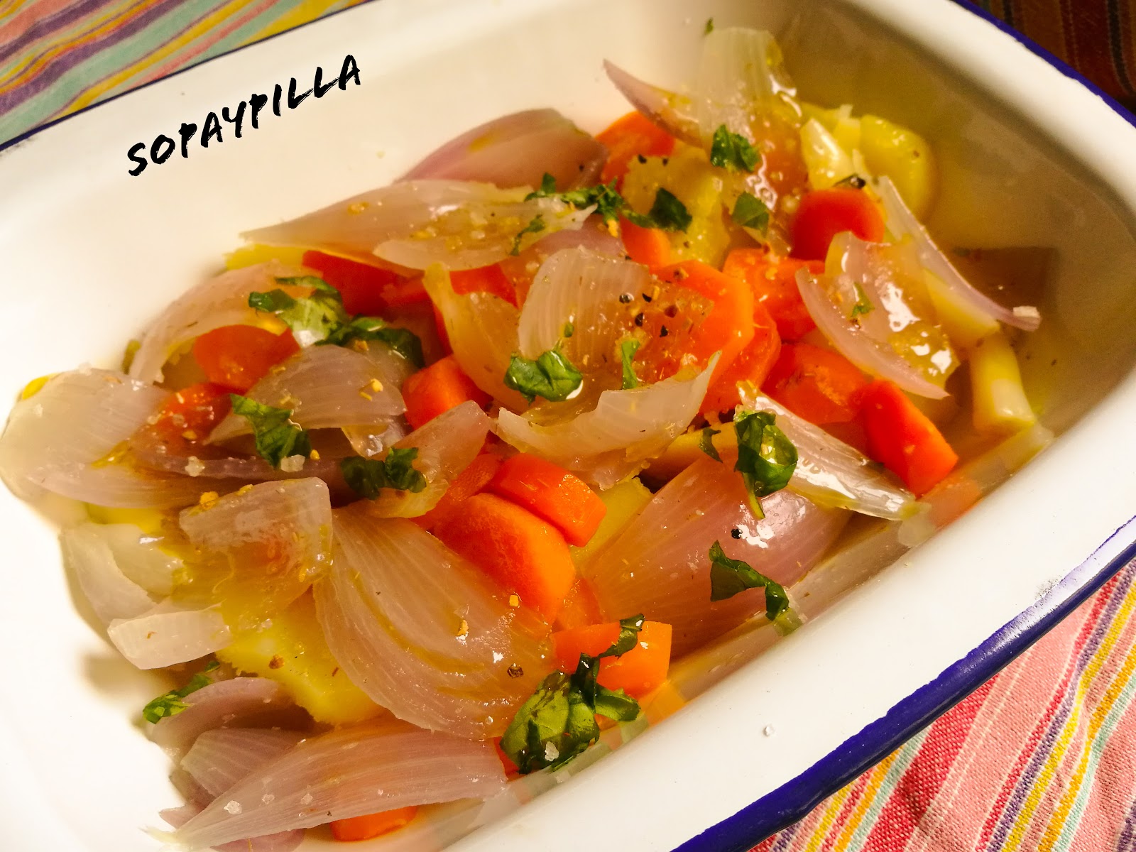 – Ponemos todas las verduras en una olla, las cubrimos con agua y dejamos que cuezan 30 minutos desde que hierva.