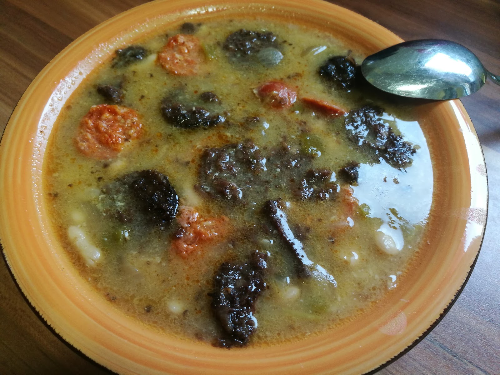 – Rectificar de sal, retirar el hueso de jamón y servir con los embutidos cortados a rodajas