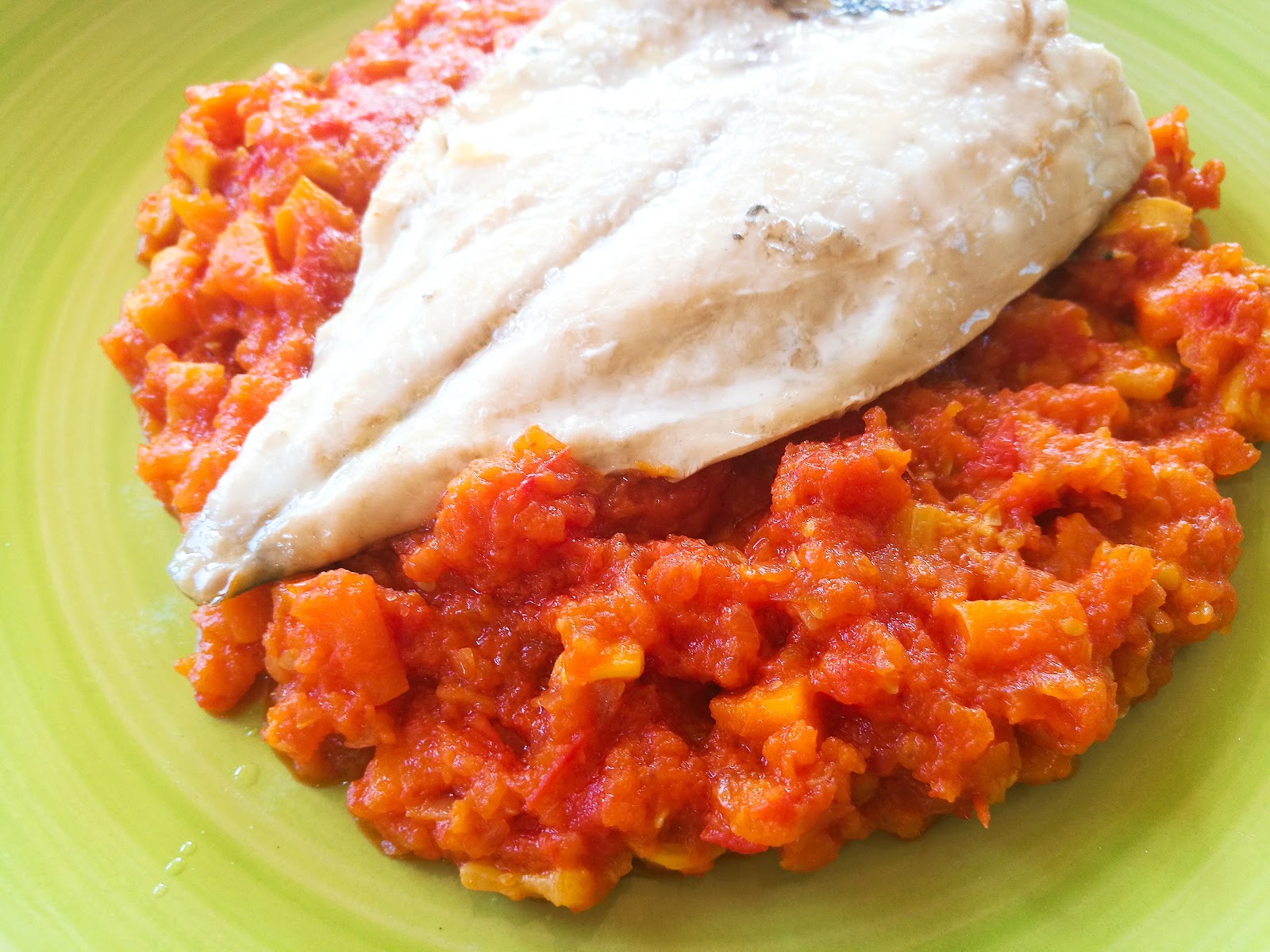 – Pasamos el pescado por la plancha y lo servimos junto a la salsa de verduras con muuuucho pan.