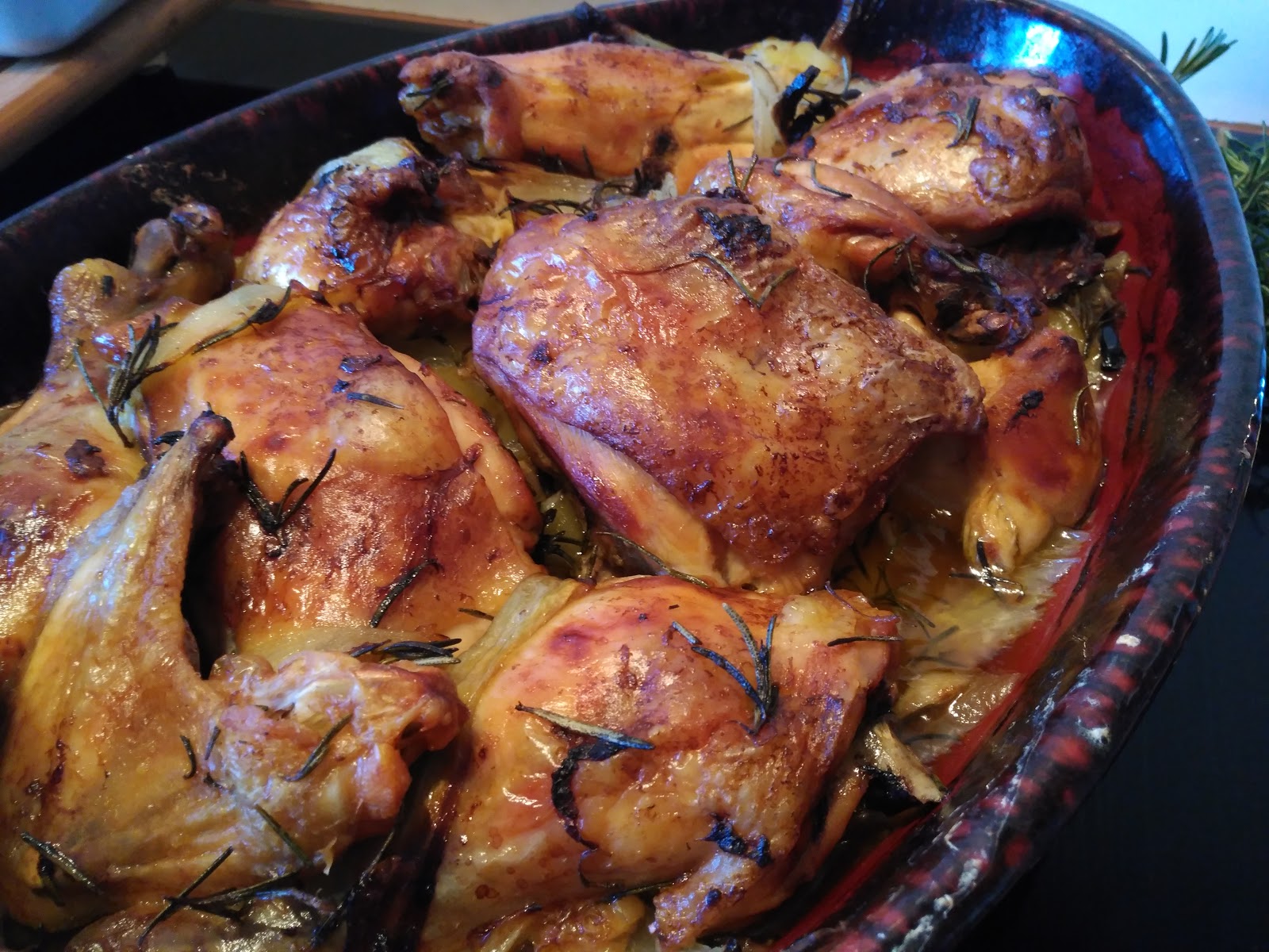 Delicioso este pollo, sin nada de trabajo, solamente hay que tener disponible el tiempo de horno, pero os aseguro que vale la pena…y además funciona como ambientador de la casa…deja un olorcito espectacular.