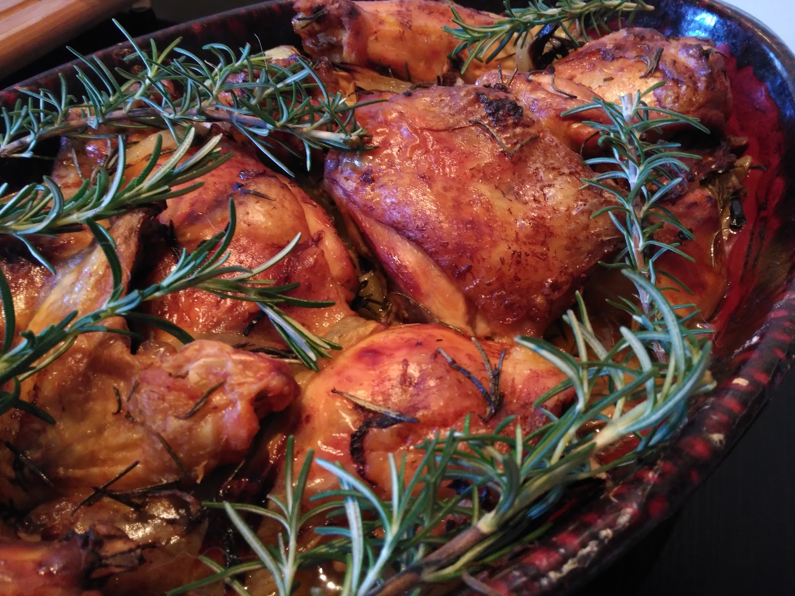 – Por último, quitar las hojas de romero de la rama y espolvorear el pollo con ellas.