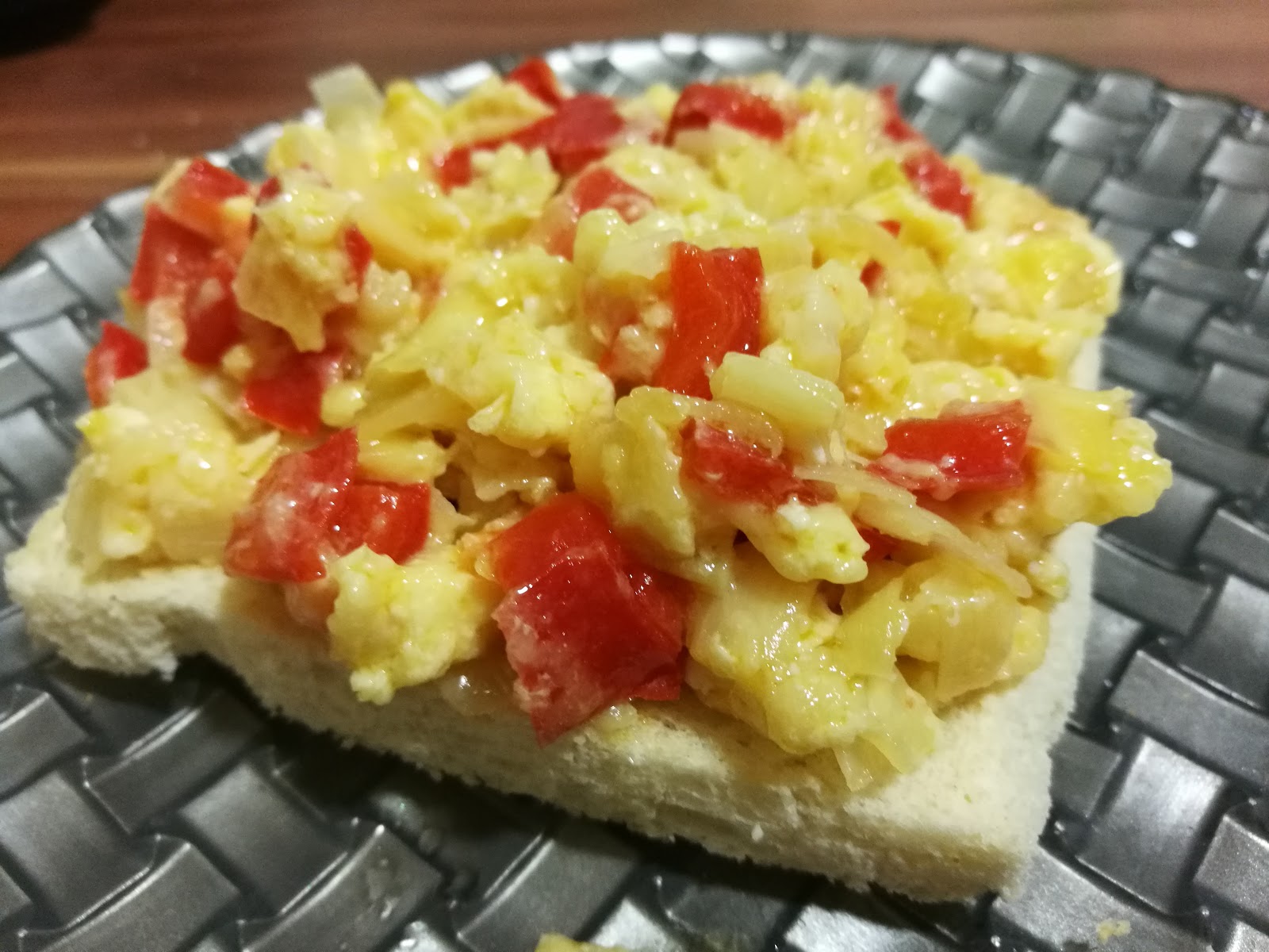 – Batir los huevos y añadirlos a la sartén, sin dejar de remover