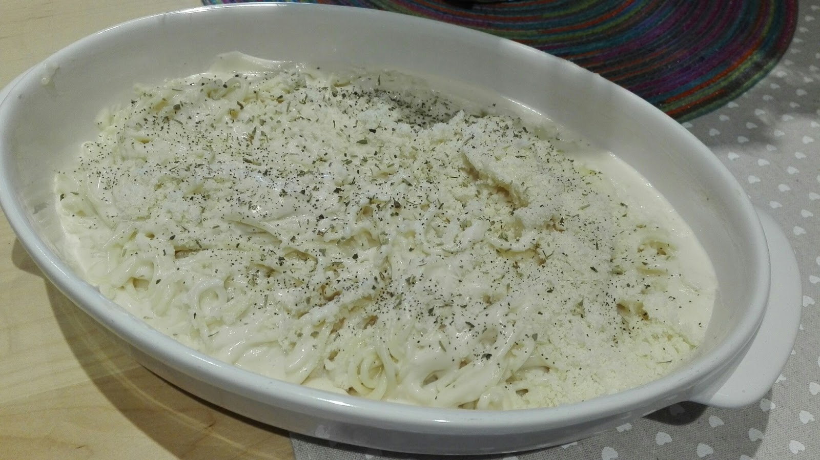 – Ahora añadimos el queso rallado, hasta deshacer del todo, mezclamos esta salsa con la pasta, espolvoreamos parmesano y perejil y a la mesa que se enfría!